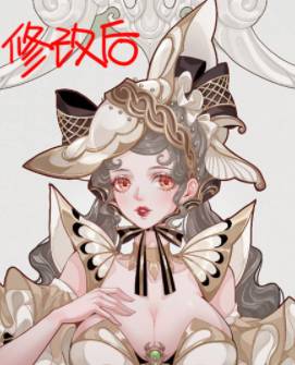 ①首先是帽子的轮廓有点点高,压低一些更贴合头部的轮廓。帽子的小翅膀装饰也可以再张开一些。