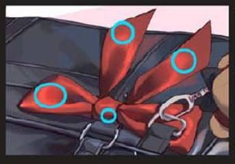 这一步没什么特别的,就是进一步地细化一下皮质的质感,然后增加一些反射的颜色,例如熊熊的反光,还有蝴蝶结的反光,让制服包和其他东西有一些联系。