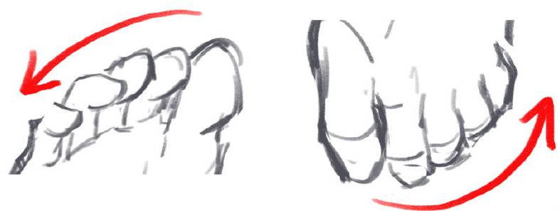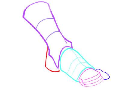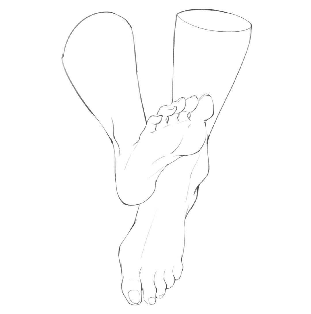 起草稿,根据上述知识点先画出脚部大致的轮廓,注意脚趾的变化曲线,越往外越内收。