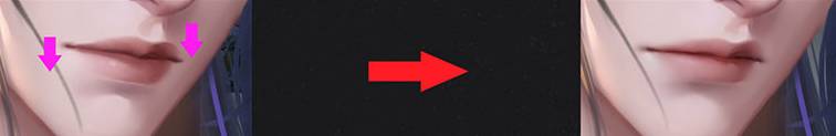 然后注意两边嘴角都要下压,嘴唇也可以稍微薄一些,因为人在愤怒时,嘴巴会抿得比较紧,嘴唇会受到一定挤压,只是这个变化不会非常的明显。甚实生气的时候鼻翼也会张开,但是会容易画丑,所以我们一般不进行鼻子的改变。