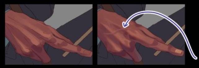 可以不时参考下自己的手,这样画出来的手更有说服力。因为是一位硬汉的手,所以要画得更有骨感一些。还可以在手部添画血管。