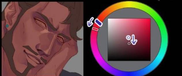 2.4、在深色阴影的内部,选用灰色调的颜色进行上色。(参照色轮)到此脸部的上色基本完成。