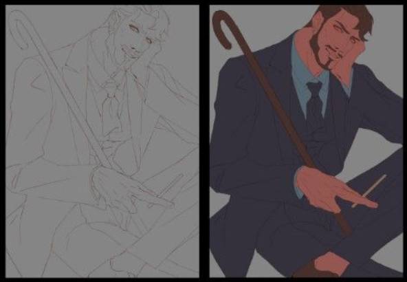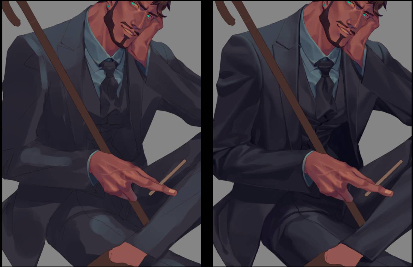 在喜欢的部分不断细化西装的上色画起来超开心。