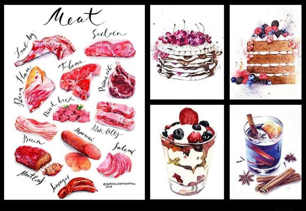 水彩彩铅各种食物原画插画969张合集 附部分教程步骤图...