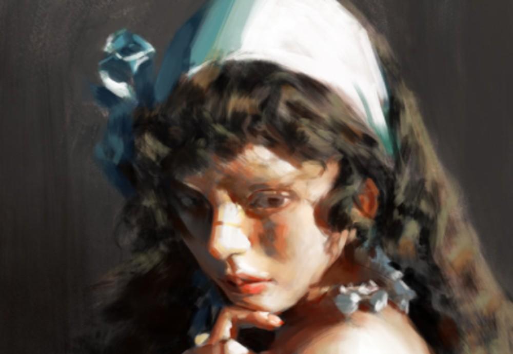 如何画出油画质感的头像?1、先分析画面左边是原参照图,这照片中的灰调子面积很大且几乎没有高亮区域所以大致将画面分成三个色调即:亮灰调,中灰调和黑调。然后根据简化过的色调再简化一下每个色调的基色,这样整...