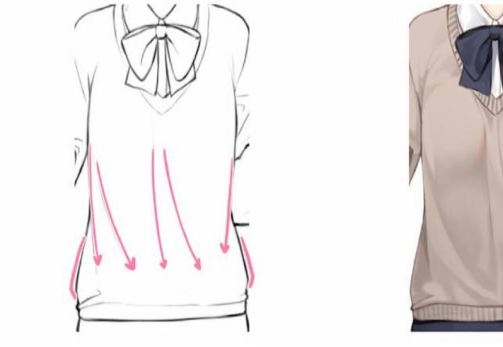 衣服褶皱怎么画的教程第一步在绘制图中所述衣物的皱褶时,应该注意三个点:1.衬衫末端塞进裤子里的褶皱状态。2.抬起右臂时拉力造成的衣褶。3.抬头时背部力量带来的衣褶。第二步在上衣塞进裤子里,双肩抬高的状...