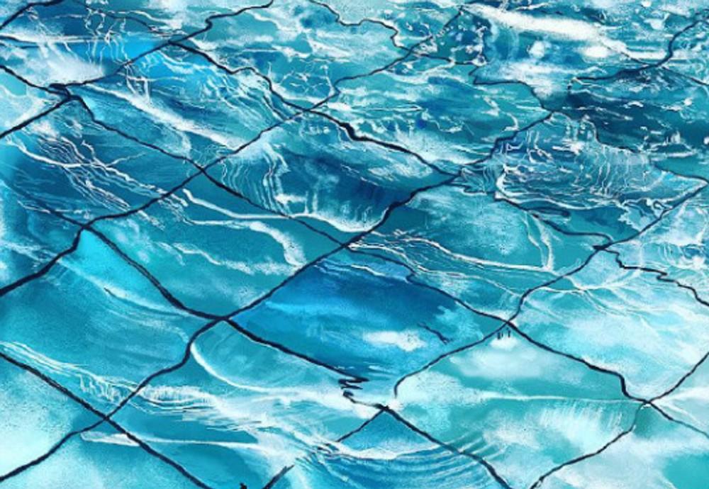 水面波纹怎么画的教程第一步先整体涂上一层淡蓝色。第二步绘画垂直的平铺线条,由于水面波动所以线条是摇摆的。第三步同理,绘画水平的线条,形成交叉的泳池地砖。第四步涂上轻薄的色彩涂层,绘画水的阴影。第五步将...